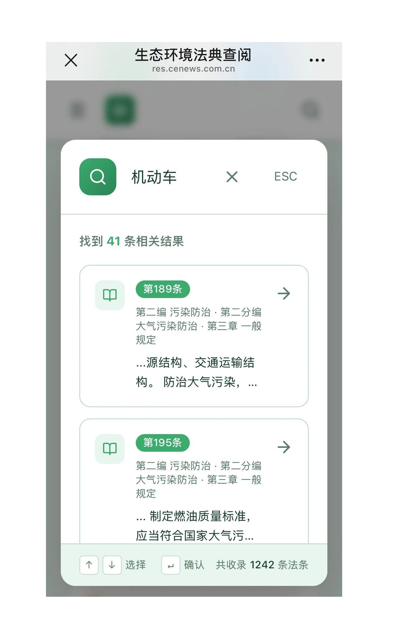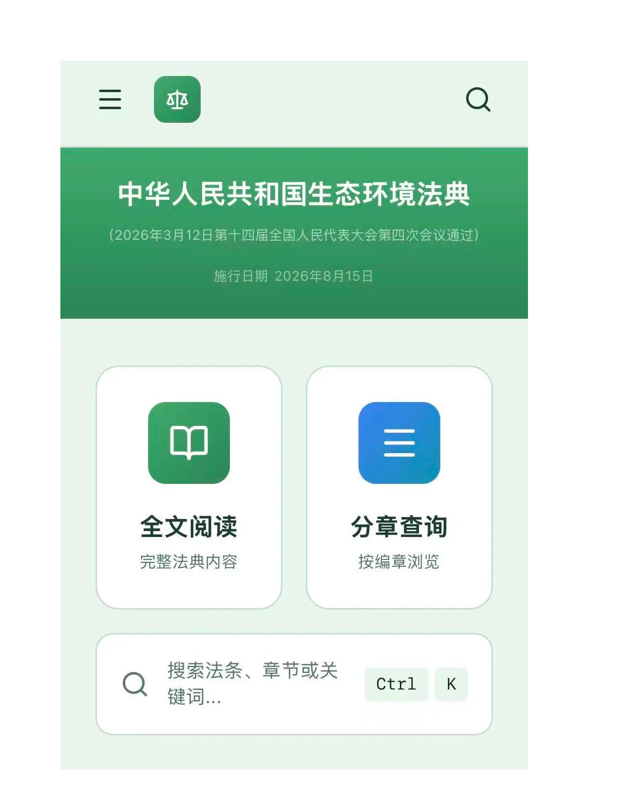 生態環境法典“掌中寶”查詢界面截圖